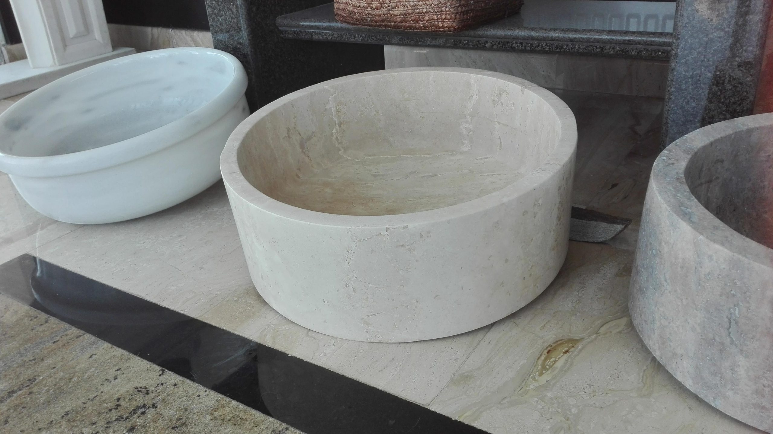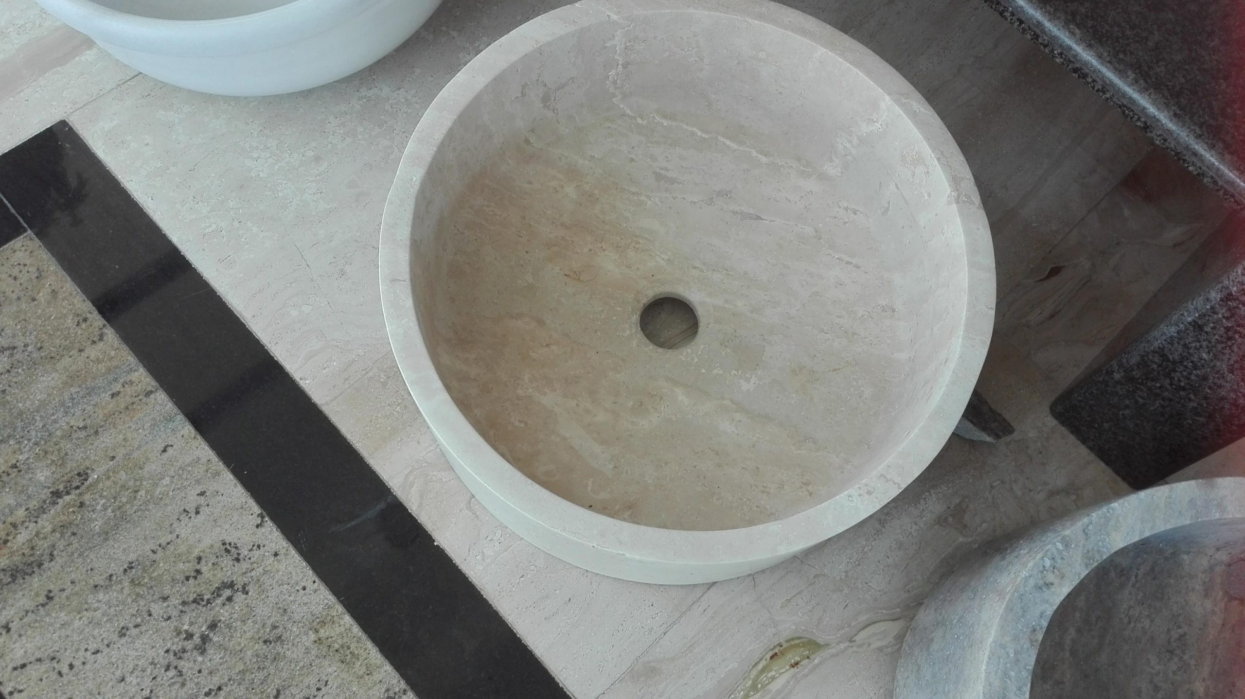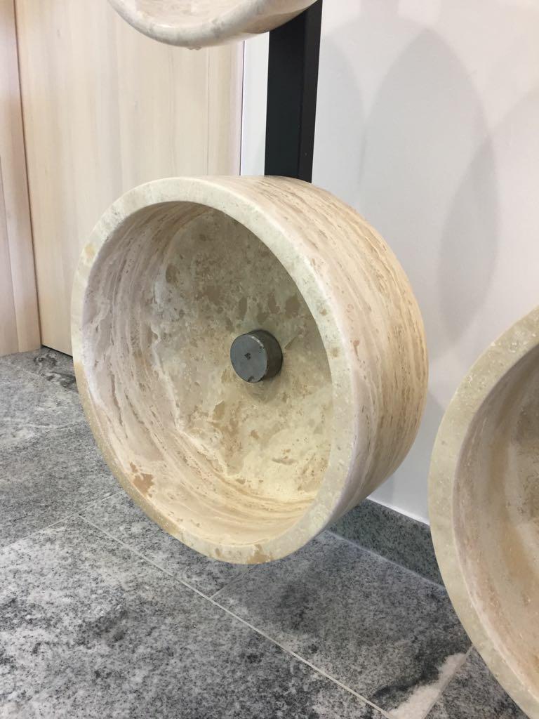 Lavoarul Travertin Classic rotund aduce farmecul natural al pietrei într-o formă echilibrată și funcțională, perfectă pentru orice baie cu caracter.
